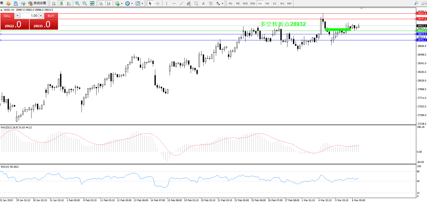 中国内地股市全天基本呈震荡格局,尾盘在券商的带动下拉升。据证券时报报道,国家发改委副主任宁吉喆在2019年全国两会的记者会上表示,消费结构是升级的,去年居民食物支出占消费支出的比重已降到28%左右,已达到中等收入国家水平,服务消费支出已占到50%。香港恒生指数全天在平盘线上方震荡,截至收盘,恒指微涨0.26%,报29037.60点。美国2ADP就业人数增幅不及预期,美国2ADP就业人数增加18.3万,预期增加19万,前值增加21.3万,只要就业人数超过10万,在当前周期下就是十分健康的水平。