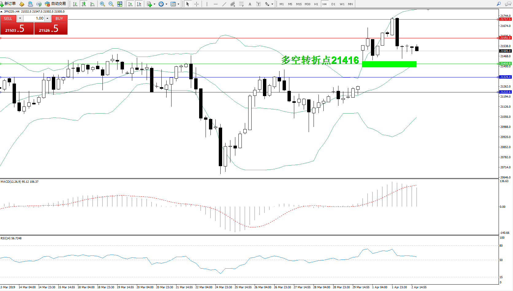 日经指数周二近收平,盘中触及一个月高位。防御类股的卖盘抵消了金融股的涨幅,美债收益率上涨推高金融股。日经指数 .N225 收低0.02%,报21,505.31点,开盘触及一个月高位21,744.64点。日本和美国可能于415日至16日在华盛顿举行第一轮贸易谈判。美国经济的乐观憧憬激励风险意愿,促使投资者盘初追高。仍然处于不稳定的状态,投资者只是寻找任何积极信号来维持涨势,或者至少设置一个底部。