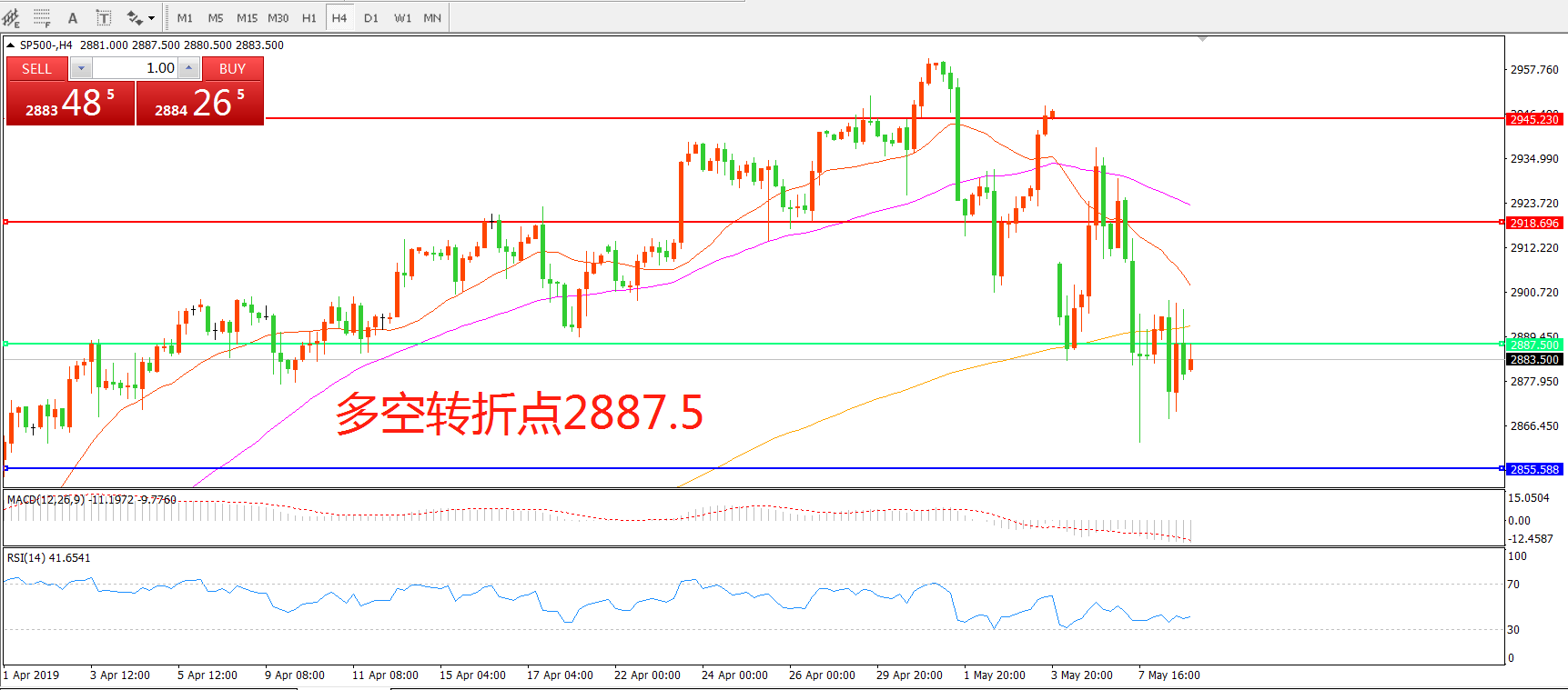 交易策略:在2887.5.之下看跌,目标2855.50     2817.50