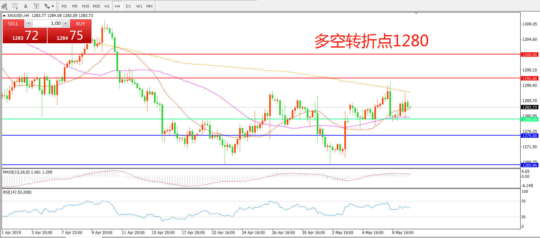 商务部新闻发言人高峰昨日表示,刘鹤副总理率团赴美参加新一轮高级别磋商,展现了中方负责任的态度和推动磋商的诚意,希望美方与中方相向而行,照顾彼此关切,通过合作和协商的办法,解决存在的问题。同时,中方已经做好应对各种可能的准备。隔夜,美国美国贸易代表办公室在联邦公报草案中证实,当地时间周五(5月10日)零时零一分起2000亿美元自中国进口商品的关税税率将从10%上调至25%,避险情绪一度推升金价走高,最终收报1283.98美元/盎司