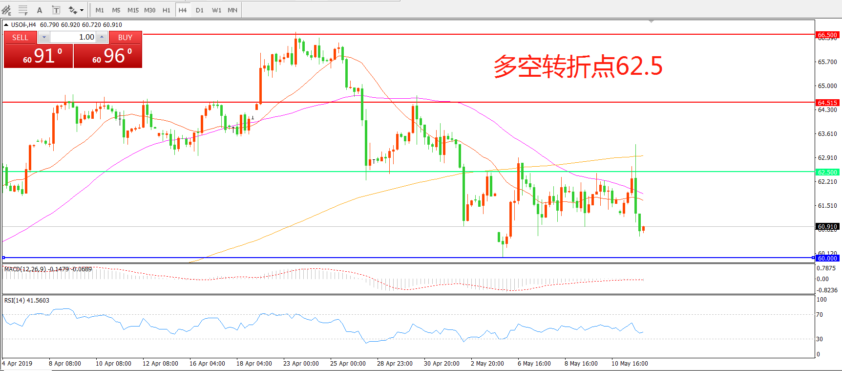 沙特阿拉伯能源部长法利赫5月13日周一证实,两艘沙特油轮上周日在阿联酋富查伊拉外海遭到“蓄意袭击”,事发时这两艘船正离开波斯湾,驶向沙特阿美位于美国的客户处。本次事件并未造成人员伤亡及石油泄漏,但两艘油轮受到明显损坏。该消息一度导致油价走高,但中国国务院关税税则委员会周一发布公告称,将6月1日起对原产于美国的部分进口商品提高加征关税税率,贸易摩擦的紧张局势令原油等风险资产全线下挫,最终美油收报61.89元/桶