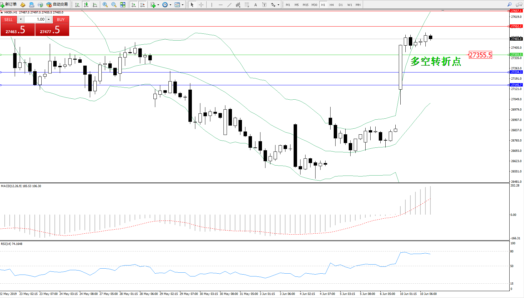 香港恒生指数盘初高开高走,随后维持在高位微幅振荡,截至收盘涨2.27%,报27578.64点。港股早上跟随外围造好而高开,实时冲破27000关口。随后再扩大升幅,恒指高见27504。内地近日重启审批游戏商业化许可,腾讯再有两款游戏获批出许可,刺激股价早上高见341.4元。恒指急升重上27000关口,未见有任何好消息落实,仅憧憬美国减息。