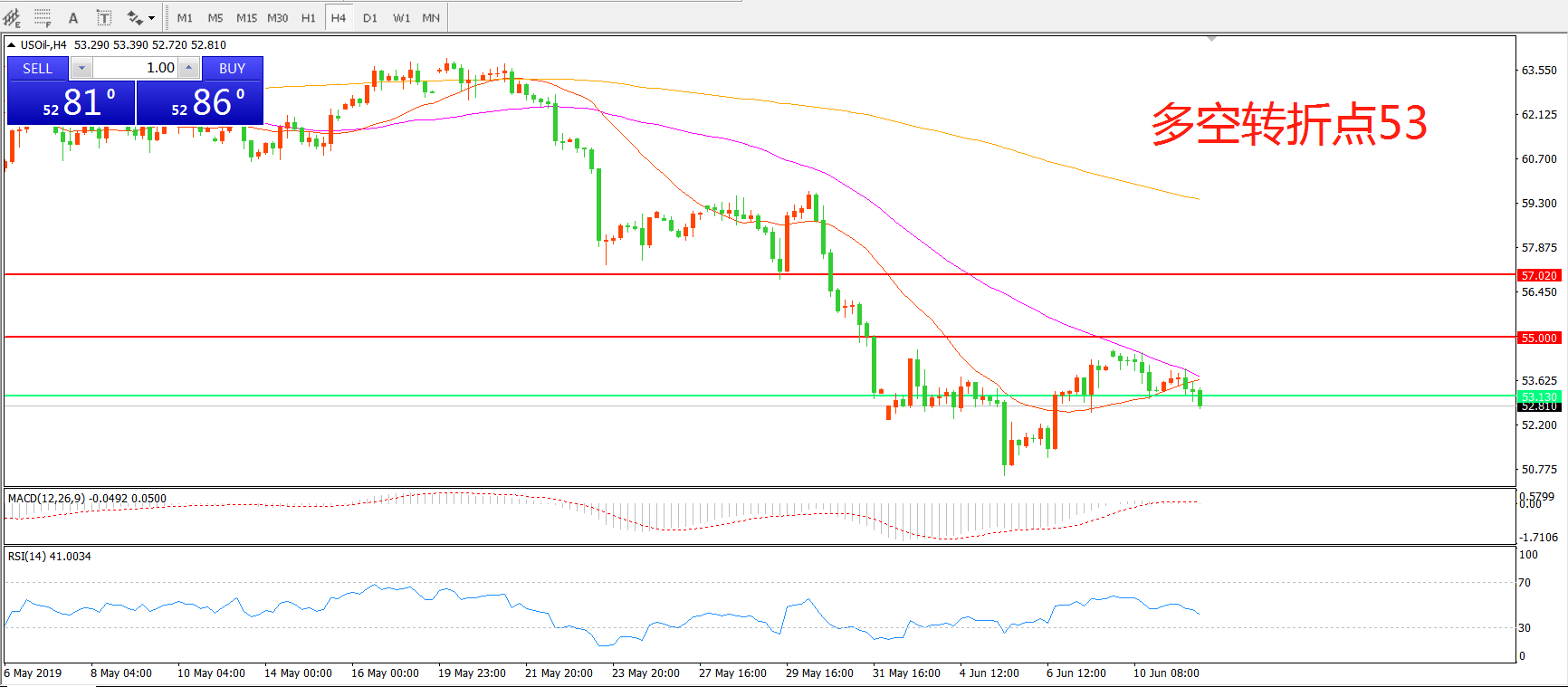 交易策略:在53.00之下看跌,目标50.00    46.00