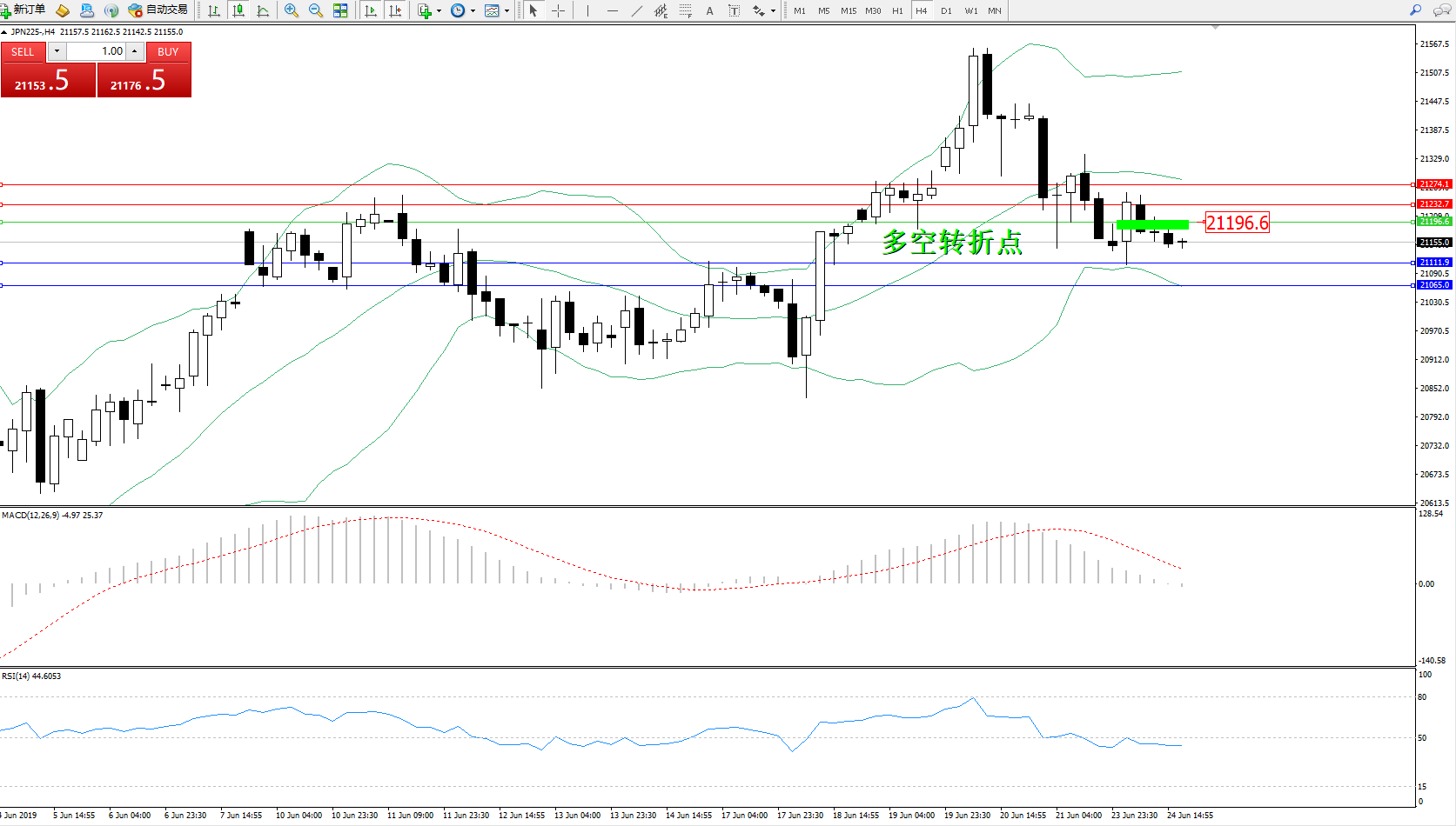 日经225指数6月24日(周一)收盘上涨33.29点,涨幅0.16%,报21277.00点。盘中交投谨慎,因投资者等待本周在贸易和地缘政治局势紧张之际召开的20国集团(G20)峰会。这是中国首次官方确认习近平将出席G20,届时他料将与美国总统特朗普会晤。市场希望两国领导人能帮助重启谈判以解决持续数月之久的贸易战。目前特朗普已经同意向伊朗发起网络攻击,而伊朗本周五(6月28日)将与德英法中俄开会,讨论如何挽救伊核协议。