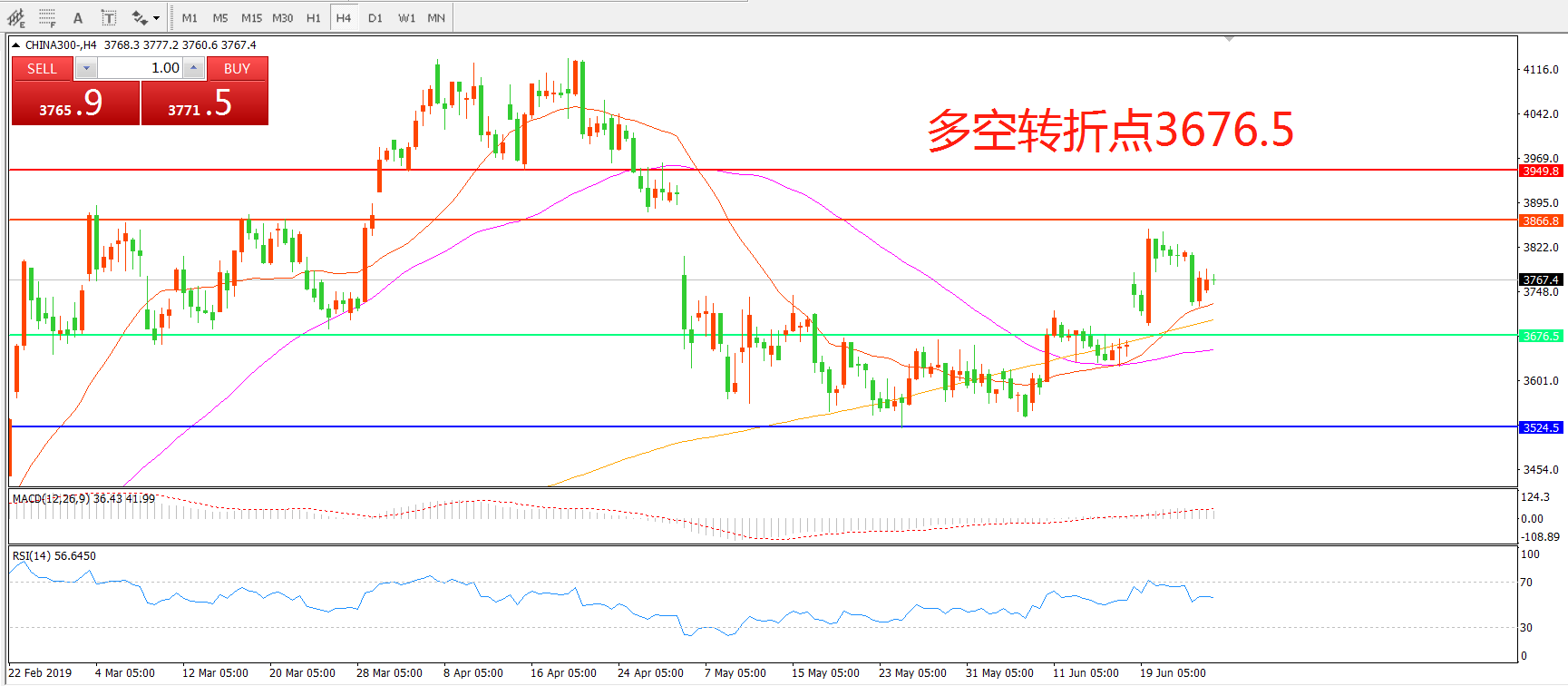 4小时图看,沪深300指数冲高后高位跳水,但整体依然处于均线支撑之上,MACD红柱增加,RSI指标拐头向上,日内延续震荡概率较大。