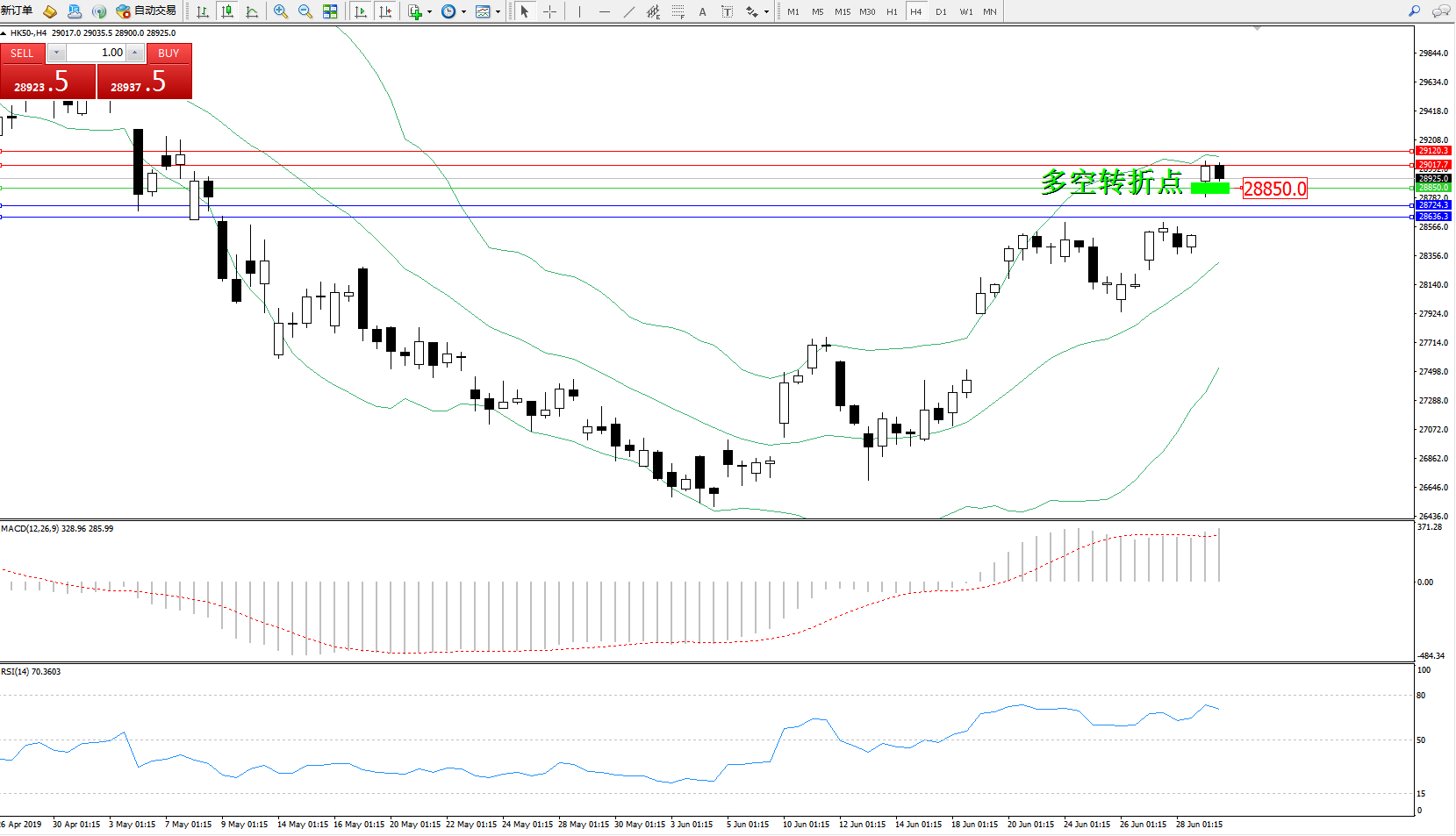 交易策略:28850上方看涨,目标29017、29120