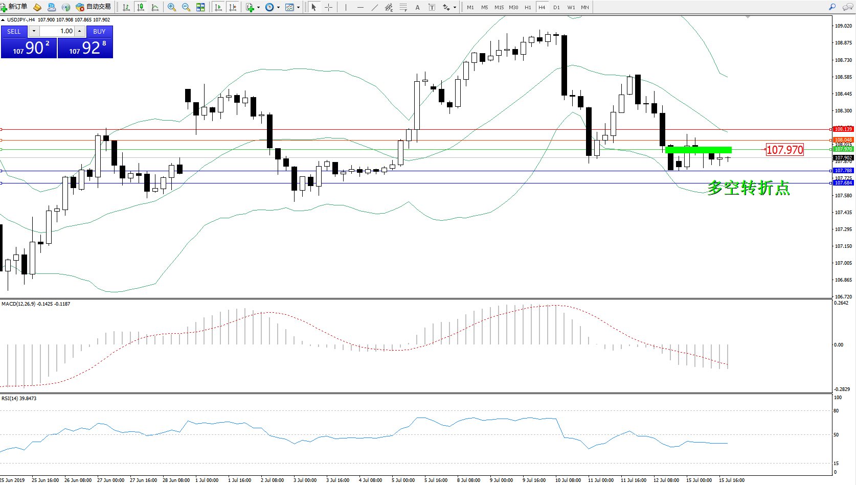 美元兑日元交持续徘徊中,美元指数继续交投于97下方,受益于避险需求有所下降,在美联储的鸽派行动下,全球股市有所企稳,较好的中国经济数据也进一步降低了全球放缓的预期,美伊局势也有所缓和,避险日元吸引力有所下滑,但日韩贸易局势有所升温,可能存在超预期的方面,另外市场等待本周美国零售销售以及一众美联储官员讲话提供更多交投线索。