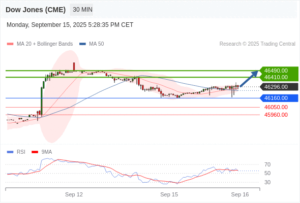 在 46160.00 之上,看涨,目标价位为 46410.00 ,然后为 46490.00 。
