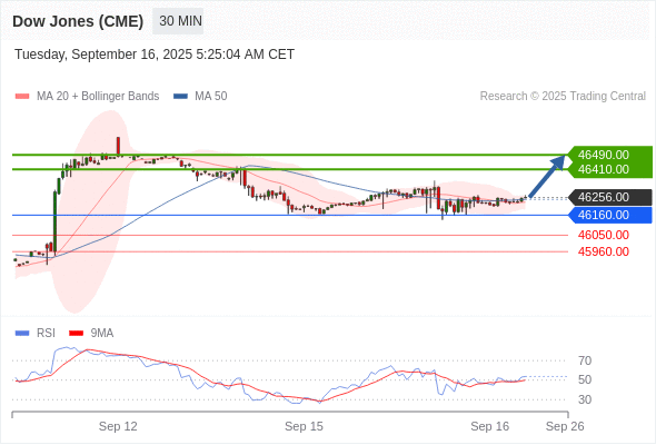 在 46160.00 之上,看涨,目标价位为 46410.00 ,然后为 46490.00 。