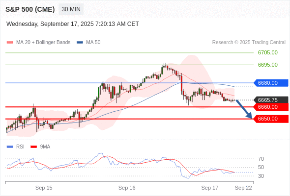 在 6680.00 之下,看跌,目标价位为 6660.00 ,然后为 6650.00 。