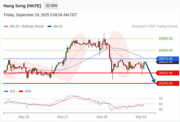 在 26670.00 之下,看跌,目标价位为 26450.00 ,然后为 26290.00 。