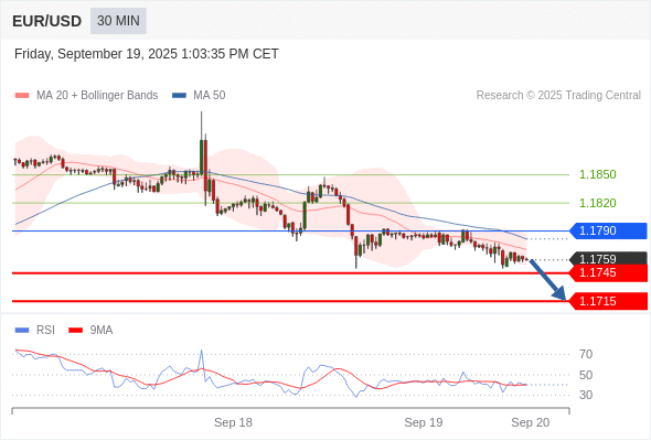 欧元/美元 当日内: 短期关键阻力位在1.1790。