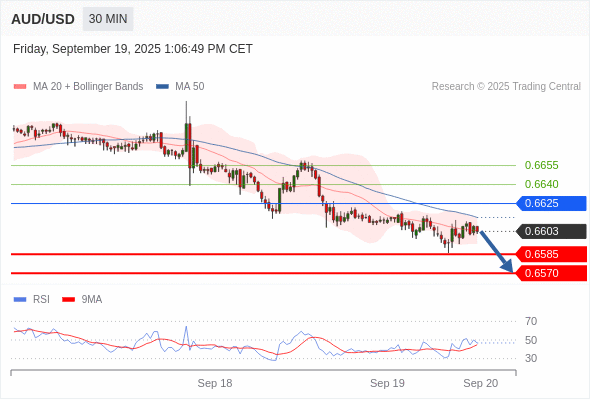 在 0.6625 之下,看跌,目标价位为 0.6585 ,然后为 0.6570 。
