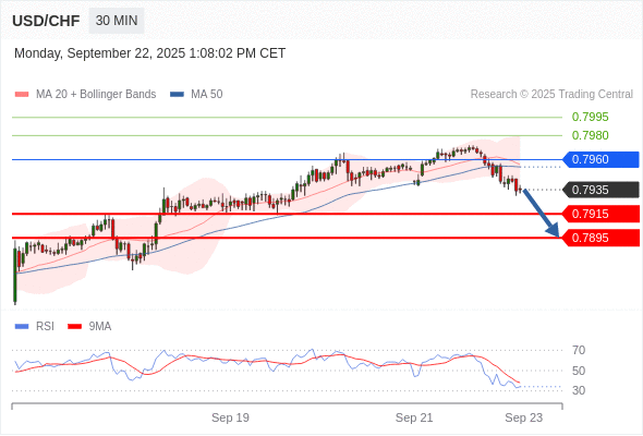 在 0.7960 之下,看跌,目标价位为 0.7915 ,然后为 0.7895 。