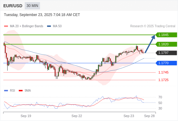 在 1.1770 之上,看涨,目标价位为 1.1820 ,然后为 1.1845 。