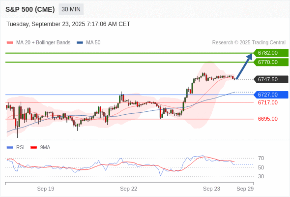 交易策略: 在 6727.00 之上,看涨,目标价位为 6770.00 ,然后为 6782.00 。