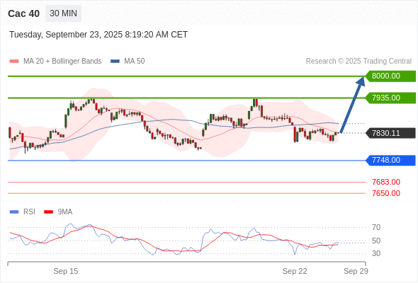 Cac 40 当日内: 在7748.00之上,看涨。