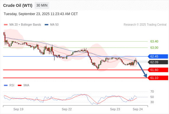 在 62.45 之下,看跌,目标价位为 61.60 ,然后为 61.10 。