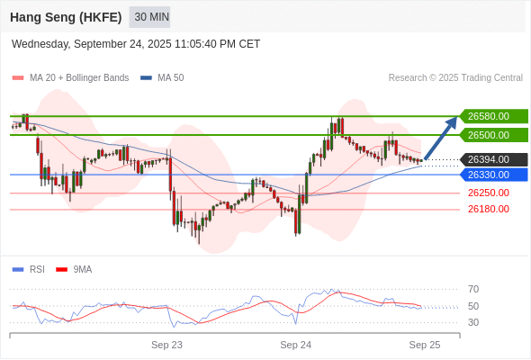 在 26330.00 之上,看涨,目标价位为 26500.00 ,然后为 26580.00 。
