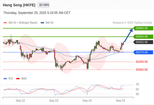 在 26370.00 之上,看涨,目标价位为 26650.00 ,然后为 26800.00 。
