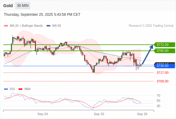 在 3730.00 之上,看涨,目标价位为 3760.00 ,然后为 3772.00 。