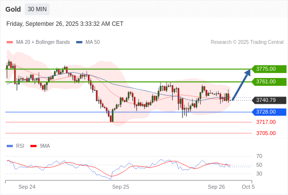在 3728.00 之上,看涨,目标价位为 3761.00 ,然后为 3775.00 。