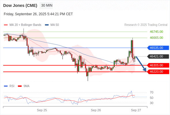 交易策略: 在 46535.00 之下,看跌,目标价位为 46305.00 ,然后为 46220.00 。