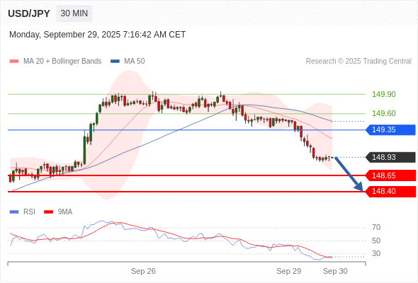 在 149.35 之下,看跌,目标价位为 148.65 ,然后为 148.40 。