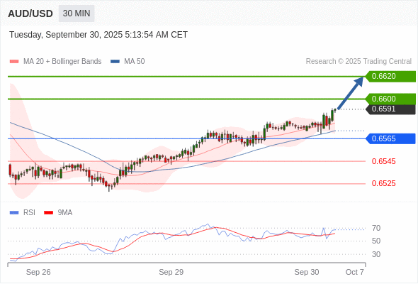 在 0.6565 之上,看涨,目标价位为 0.6600 ,然后为 0.6620 。