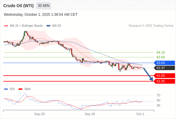 在 63.00 之下,看跌,目标价位为 61.65 ,然后为 61.05 。