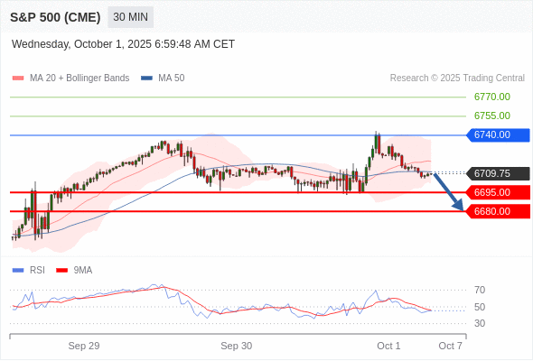 在 6740.00 之下,看跌,目标价位为 6695.00 ,然后为 6680.00 。