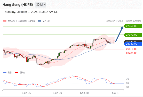 在 26780.00 之上,看涨,目标价位为 27070.00 ,然后为 27350.00 。