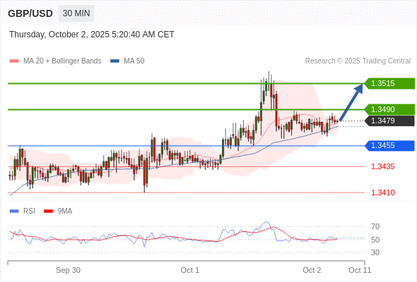 在 1.3455 之上,看涨,目标价位为 1.3490 ,然后为 1.3515 。