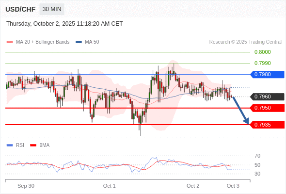 在 0.7980 之下,看跌,目标价位为 0.7950 ,然后为 0.7935 。