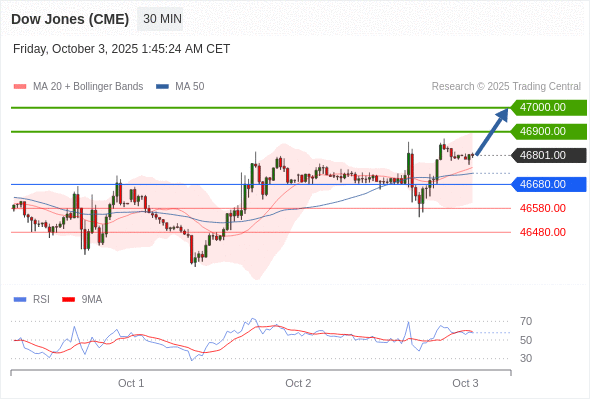 在 46680.00 之上,看涨,目标价位为 46900.00 ,然后为 47000.00 。