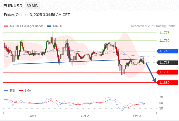 交易策略: 在 1.1740 之下,看跌,目标价位为 1.1700 ,然后为 1.1680 。