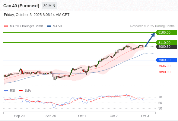 法国CAC指数期货 (Euronext) (V5) 当日内: 看涨。
