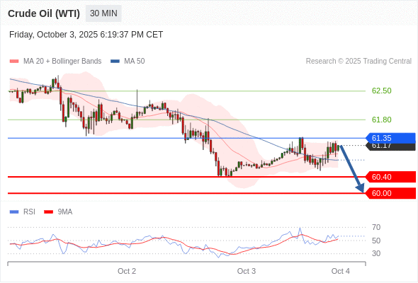 交易策略: 在 61.35 之下,看跌,目标价位为 60.40 ,然后为 60.00 。