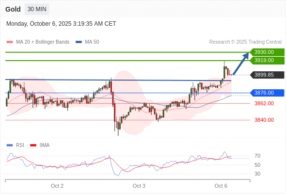 在 3876.00 之上,看涨,目标价位为 3919.00 ,然后为 3930.00 。