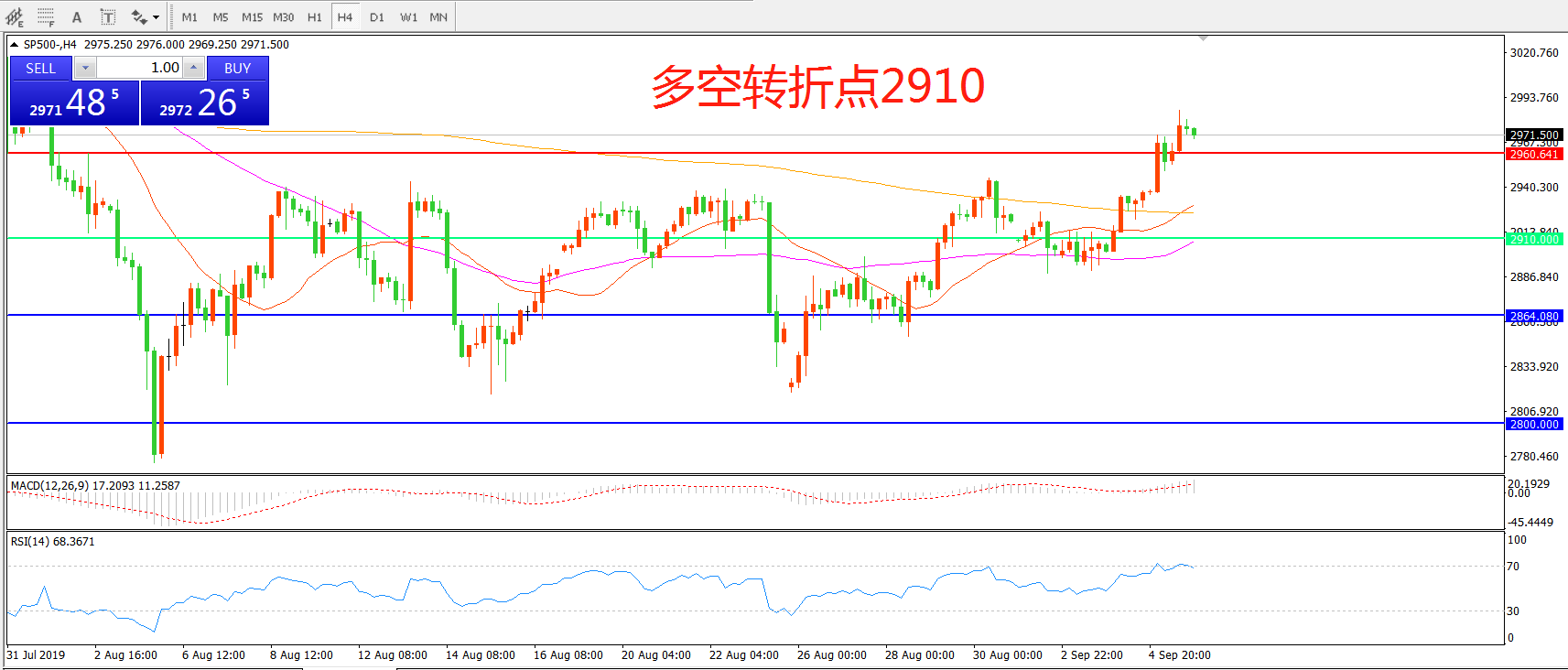周四(9月5日),新华社等媒体报道,中美双方同意10月初在华盛顿举行第十三轮中美经贸高级别磋商。同时美国8月ADP就业人数增加19.5万人,远超14.9万人的预期,国际贸易局势可能取得进展的迹象与乐观的经济数据提振了投资者风险投资偏好,美股在科技和金融股领涨下大幅收涨,标普500涨逾1%,最终收报2972.75点。大型科技股集体收涨,苹果涨1.96%,中概股多数收涨,阿里巴巴涨2.64%。