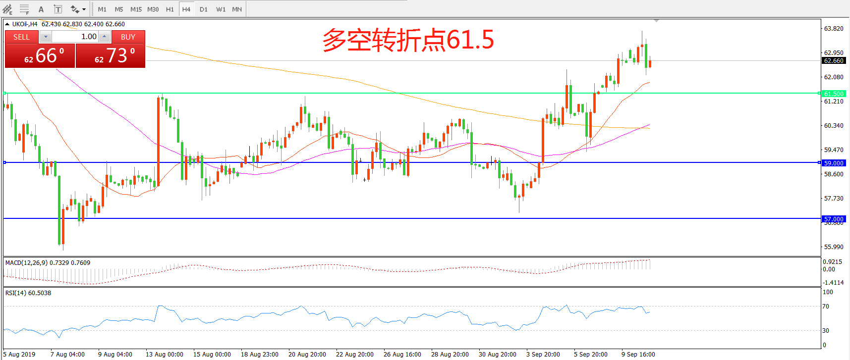 交易策略:在61.50之上看涨,目标64.00 66.70