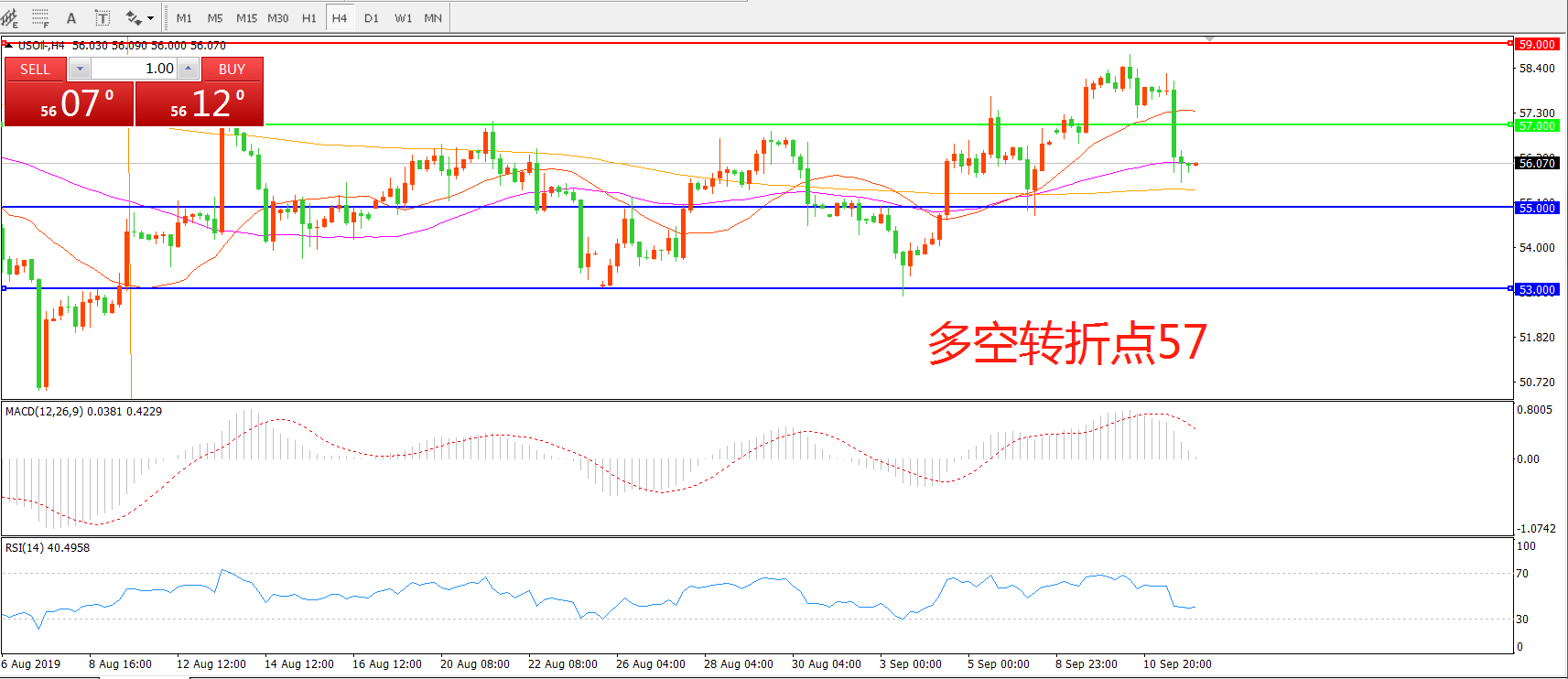 交易策略:在57.00 之下看跌,目标55.00 53.00