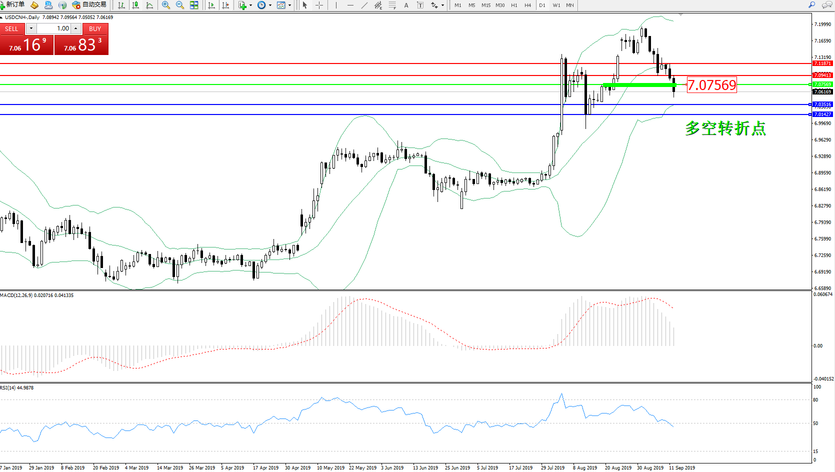 交易策略:7.07569下方看跌,目标7.03516、7.01427
