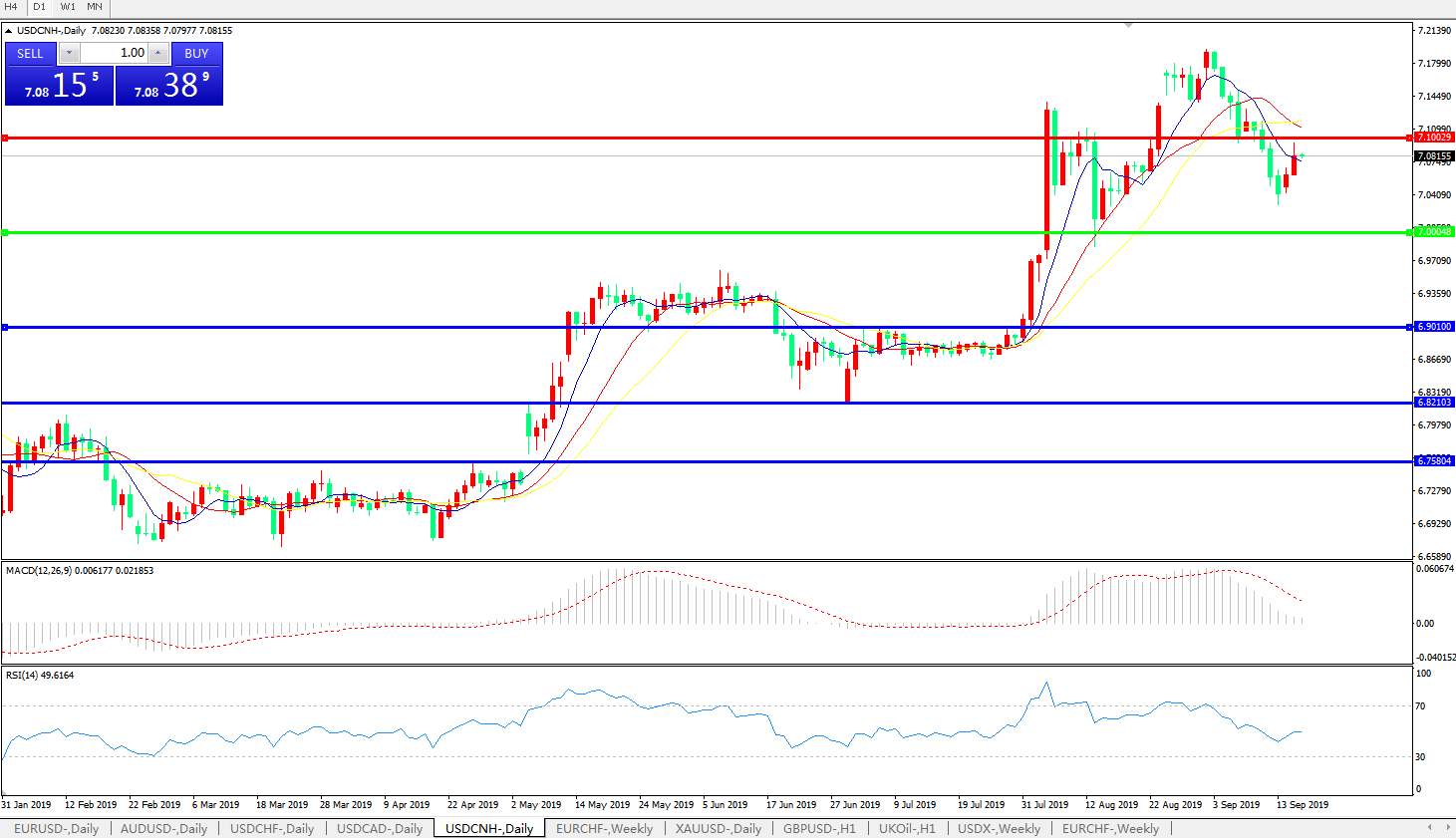 美元兑人民币USDCNH    日线图: