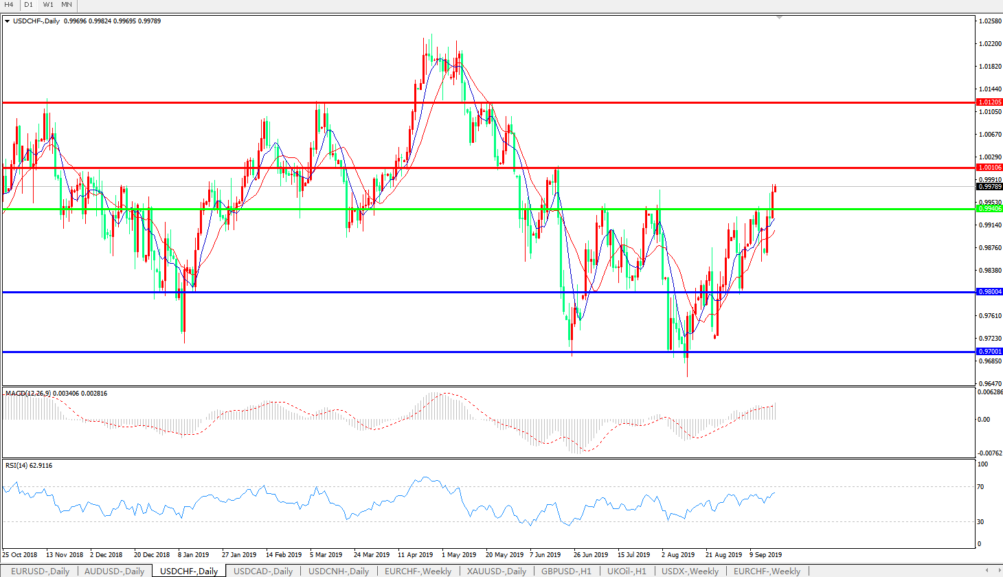 美元兑瑞郎USDCHF 日线图: