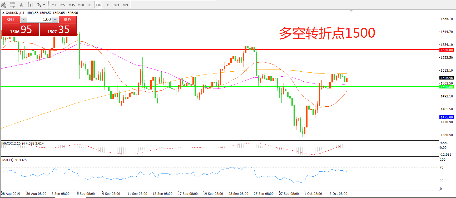 多空转折点:1500.00