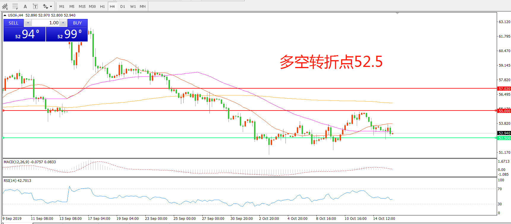 多空转折点:52.50