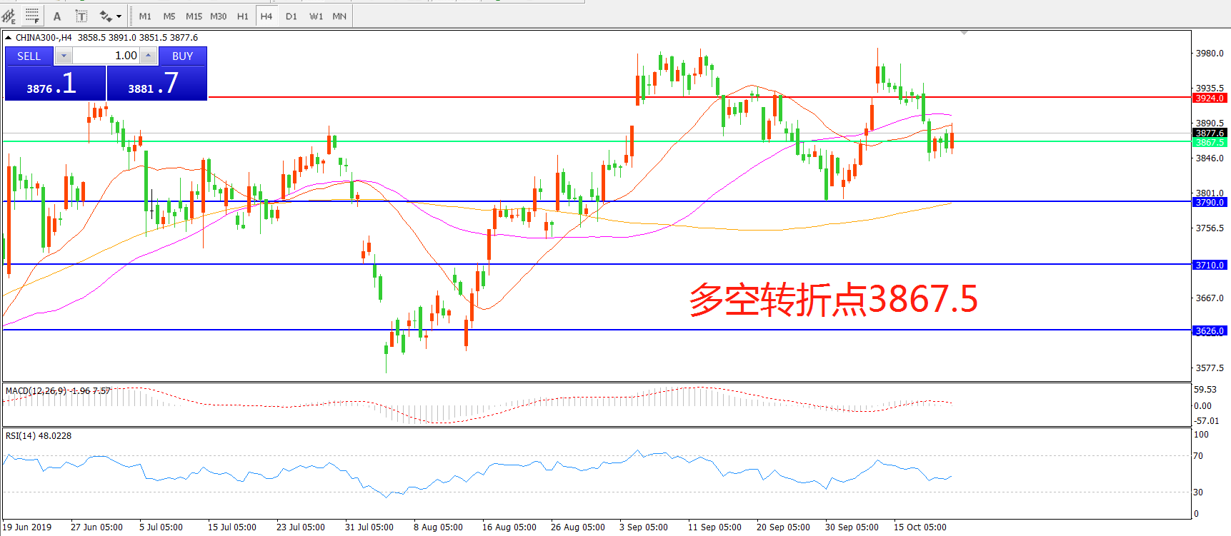 4小时图看,沪深300维持窄幅震荡,整体走势有止跌迹象,3980、3924成为上方明显阻力,均线系统走平,MACD红柱缩短,RSI指标向下,日内延续震荡概率较大。