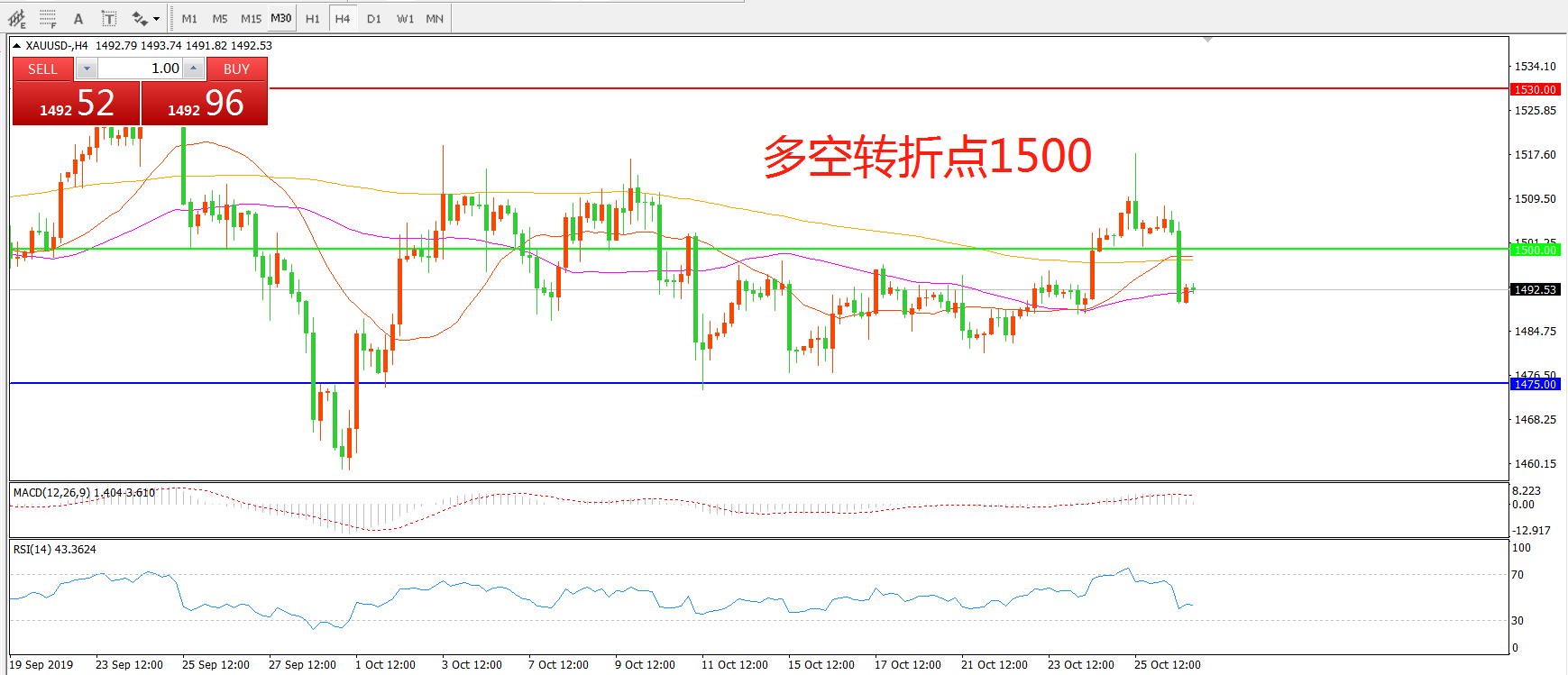 多空转折点:1500.00
