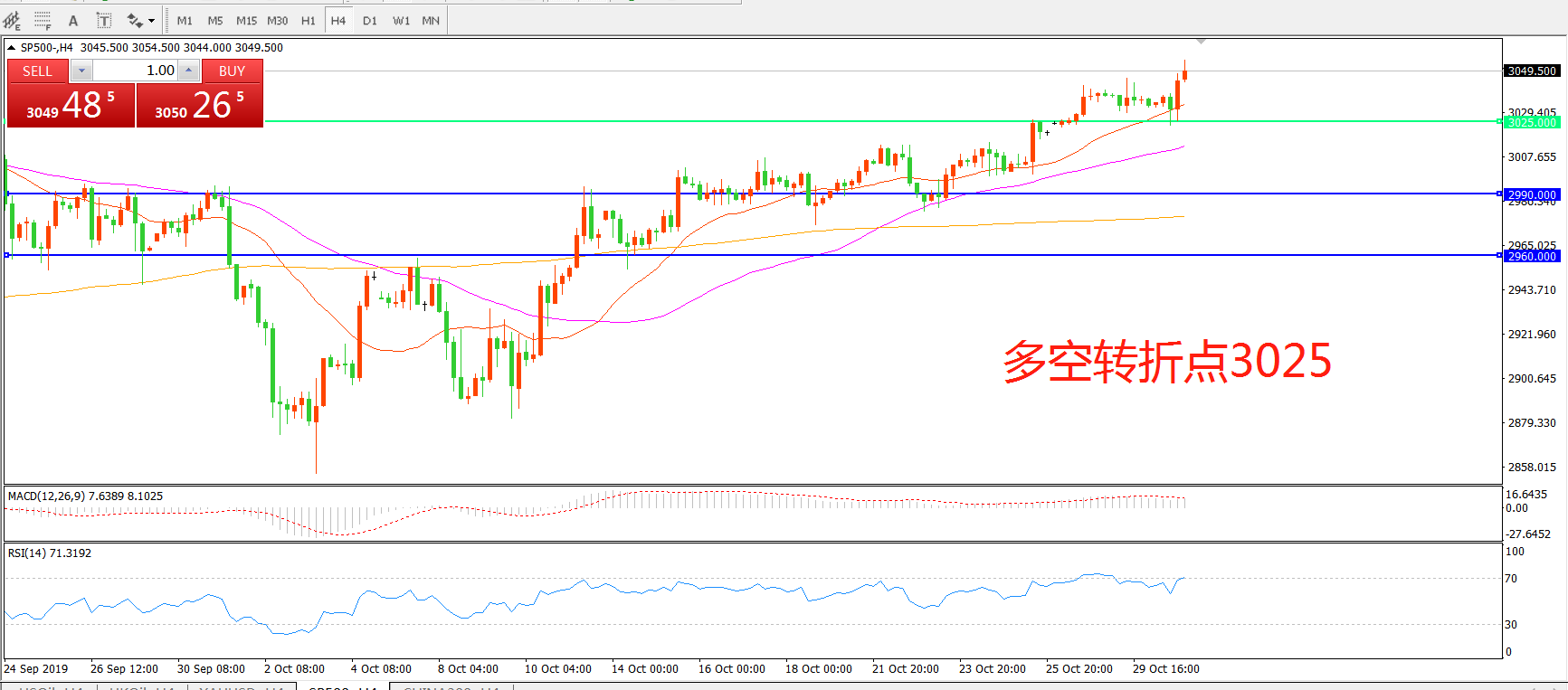 多空转折点:3025.00